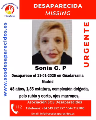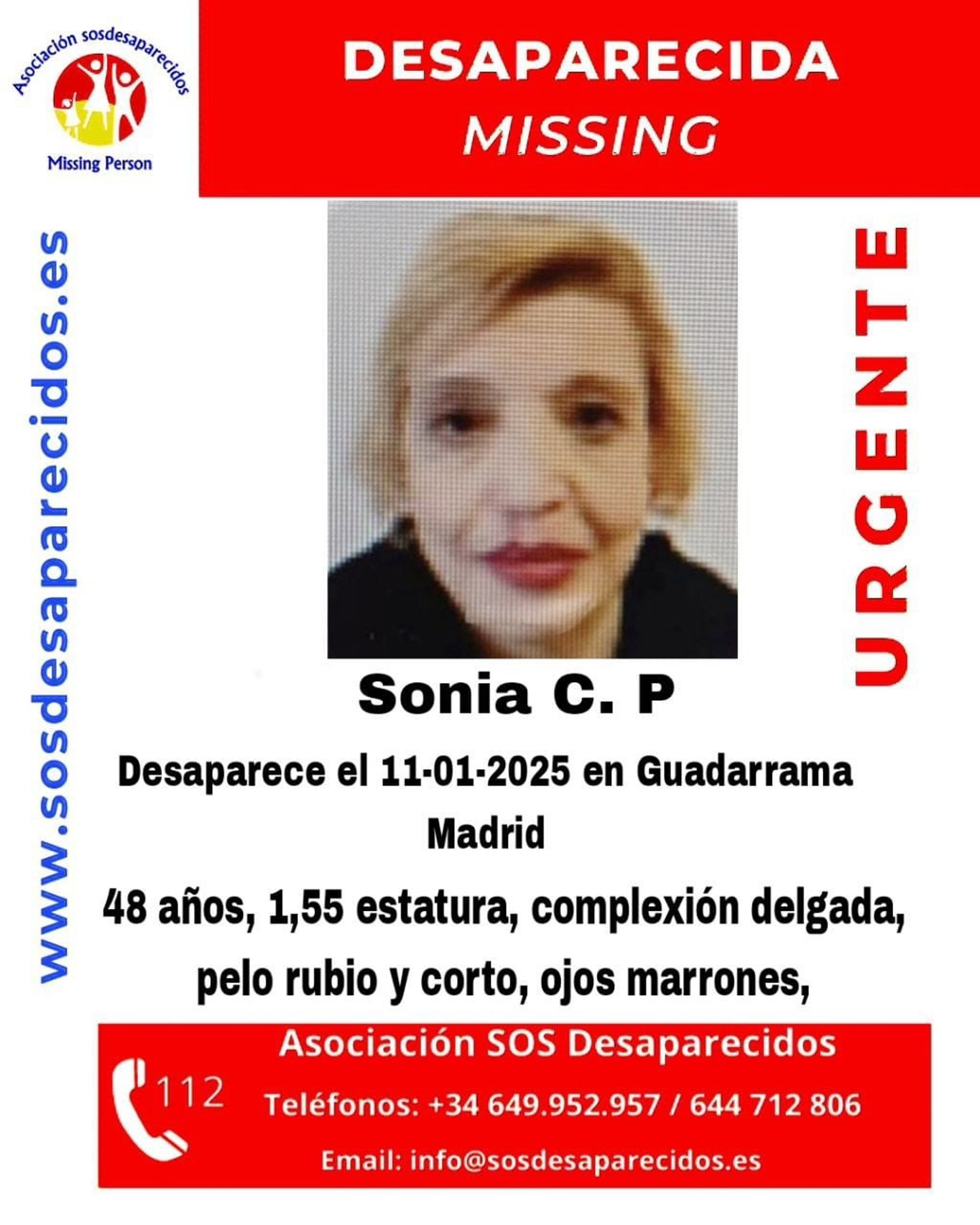 Familiares, amigos, compañeros y Fuerzas y Cuerpos de Seguridad buscan desde el pasado sábado, 11 de enero, a una mujer de 48 años en la localidad de Guadarrama, ha alertado la asociación SOS Desaparecidos y el Centro Nacional de Desaparecidos.