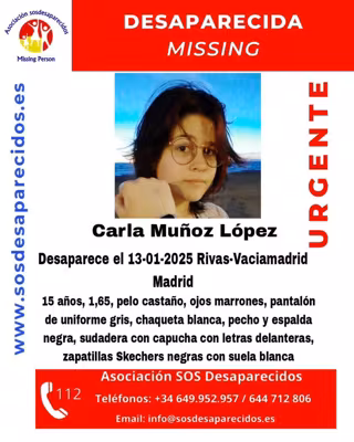 Familiares, amigos, compañeros y Fuerzas y Cuerpos de Seguridad buscan desde el pasado lunes, 13 de enero, a una niña de 15 años en la localidad de Rivas-Vaciamadrid, ha alertado la asociación SOS Desaparecidos y el Centro Nacional de Desaparecidos.