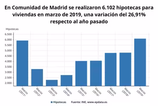 Según los datos nacionales, el número de hipotecas sobre viviendas inscritas en los registros de la propiedad se situó en 30.716 en marzo, cifra un 15,8 por ciento superior a la del mismo mes de 2018 y la más elevada en este mes desde 2011.