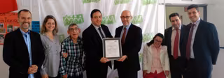 El director de Certificación de la Cámara, Javier Méndez, entregó el certificado al presidente de Apadis, Francisco Molina, en un acto en el que también estuvieron presentes el director técnico de Certificación y el responsable comercial, Luis Tatay y José Ángel Guillén, respectivamente.