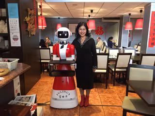 El restaurante Fulihua lleva más de 20 años sirviendo comida china en el barrio de Valdebernardo, situado en el distrito de Vicálvaro, pero ahora se ha convertido en un reclamo para los vecinos por una nueva camarera robot que llama 'cariño' a los clientes cuando les sirve los platos.