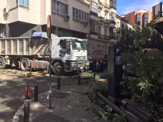 Los hechos se han producido sobre las 14.00 horas cuando un camión situado en la calle Guzman el Bueno con la calle Rodríguez San Pedro ha perdido los frenos y se ha llevado por delante un banco, un semáforo, varios bolardos y diversos árboles. Finalmente, se ha empotrado contra otro camión.