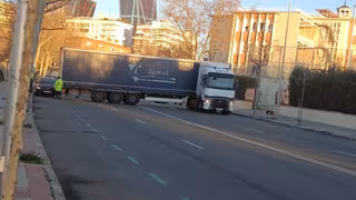 Por causas que están siendo investigadas un camión de gran tonelaje de una empresa dedicada al transporte de mercancías ha hecho la tijera durante una maniobra y ha quedado totalmente atravesado en la calle.