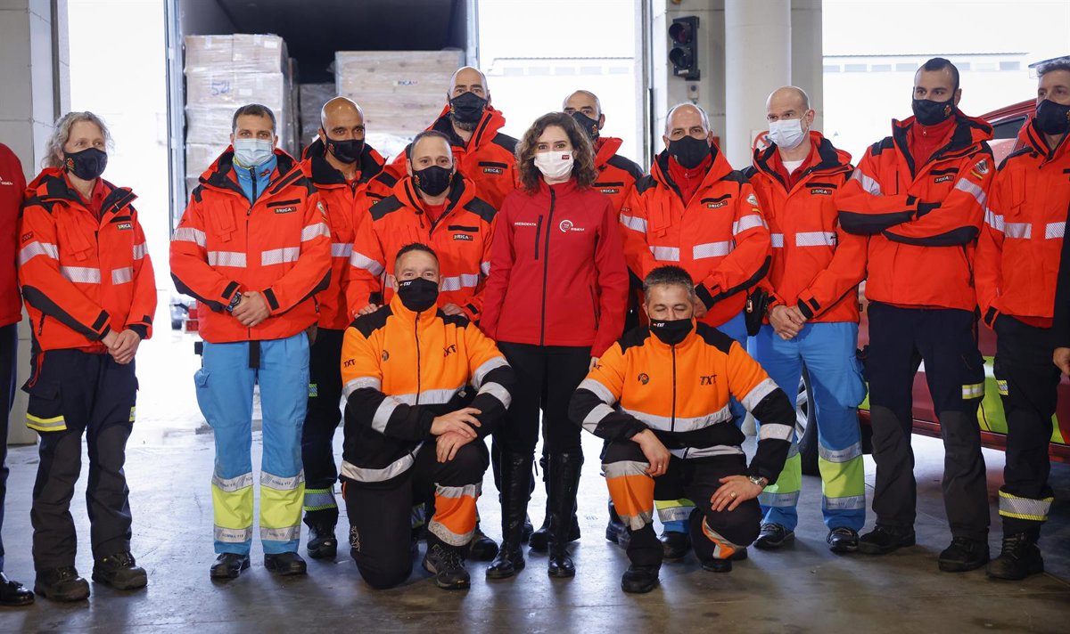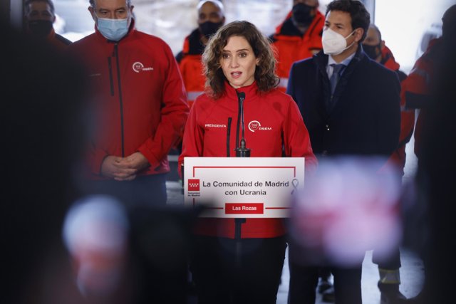 Díaz Ayuso, junto con el consejero de Presidencia, Justicia e Interior, Enrique López, y el viceconsejero de Asistencia Sanitaria y Salud Pública, Antonio Zapatero, han acudido a la sede del ERICAM, situada en el parque de Bomberos de Las Rozas, para despedir y apoyar al contingente, que tiene como objetivo llegar a la localidad polaca de Rzeszów, a unos 60 kilómetros de Ucrania, y entregar este material esencial.