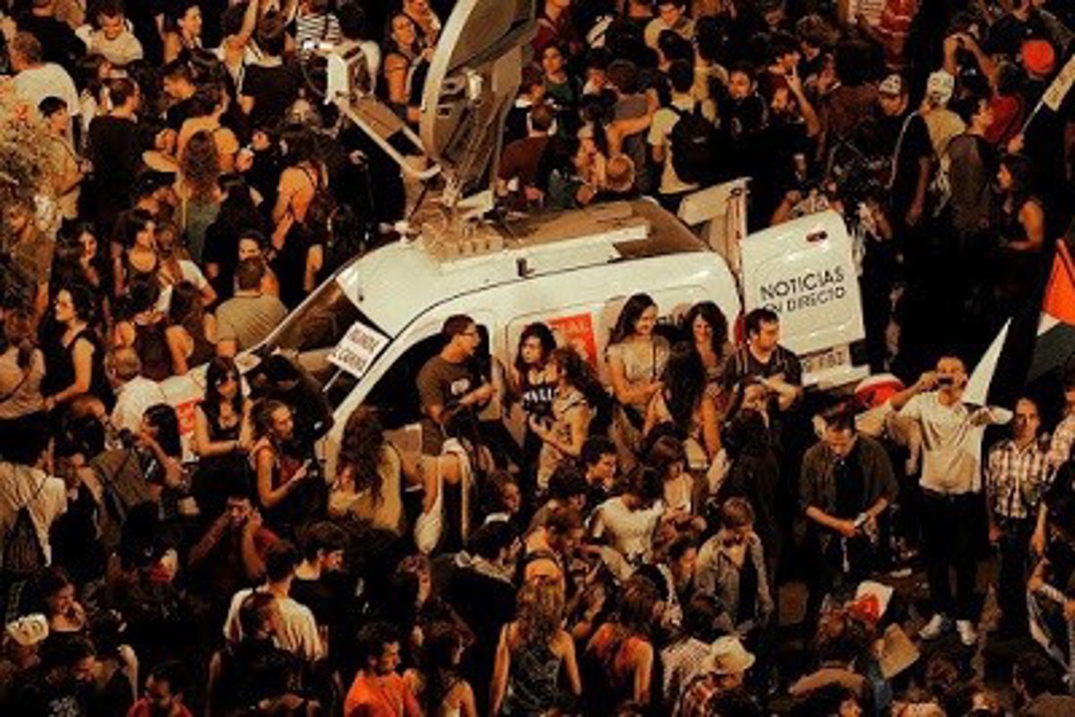 El equipo de Canal 33, transmitiendo en directo en una de las manifestación del 15M - CANAL 33