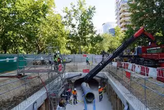 Las obras en el Paseo de la Castellana se encuentran ejecutadas al 15 por ciento y estarán finalizadas en el segundo semestre de 2020, para beneficiar a 800.000 madrileños que se abastecen de agua a través de esta red.