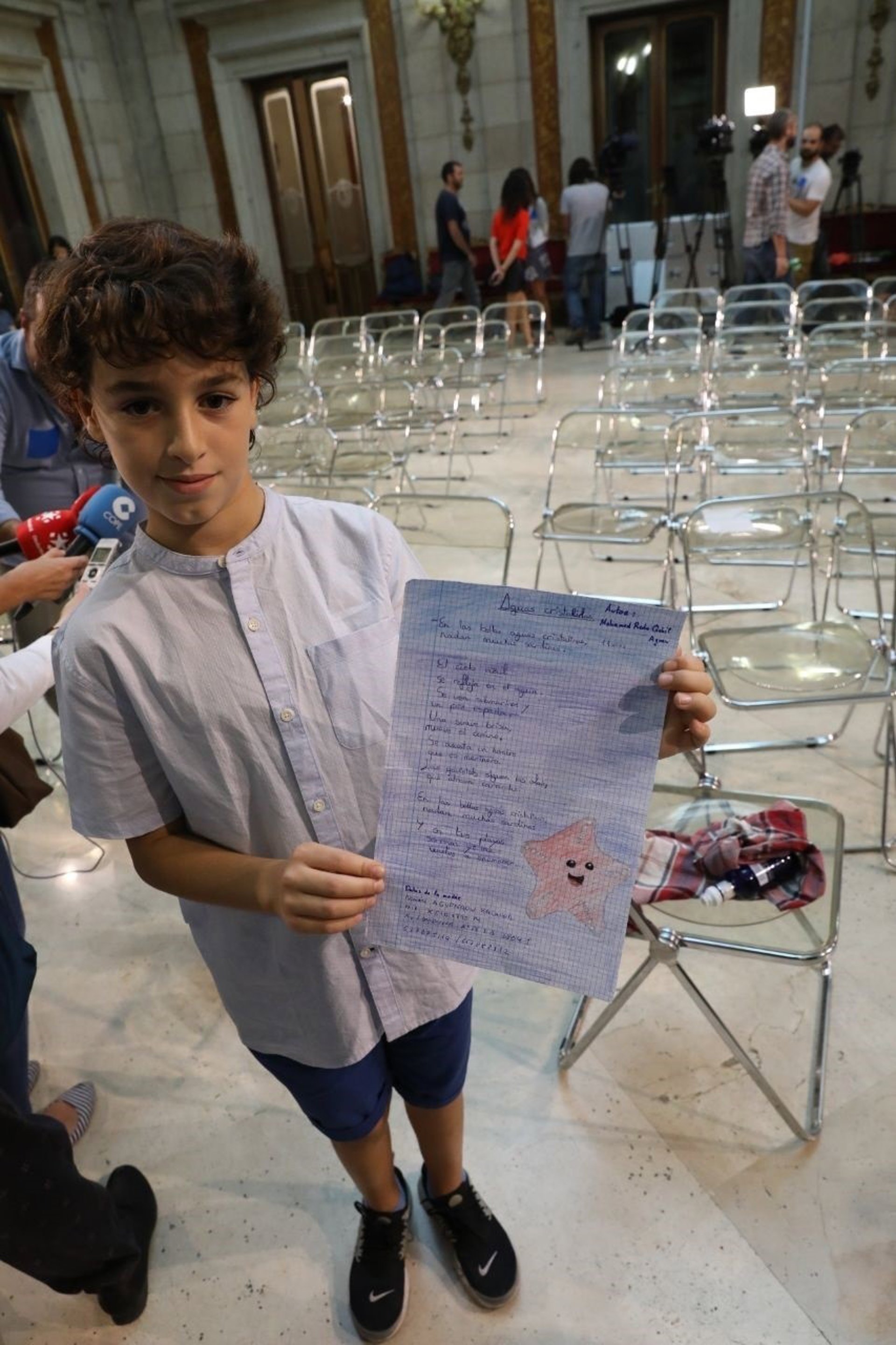 Cinco han sido los ganadores, presentados por la alcaldesa como si se tratara de la gala de los Oscar de Hollywood: Juan Eduardo Anguita Seco, de 6 años, con un poema sobre su gato superhéroe; Sara Caballero Cocca (9 años), cuyos versos están dedicados a los secretos que guarda en su pelo; Lara Ortiz de Landaluce Delgado (7), que pone en verso las sensaciones que le produce el mar; Maia Sanmartín Wagemann (10) y sus vicisitudes en las clases de trompeta, y Alba Alhambra Sánchez (12), con el poema titulado 'Serena soledad'.
