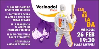 Una 'carnavalada' repartirá este miércoles 'Vecinadol Forte', un 'medicamento' para hacer frente a la especulación con la vivienda y la gentrificación, en un recorrido que partirá de Lavapiés y que culminará en la Puerta del Sol.