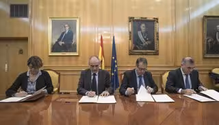 El Gobierno central, la Comunidad de Madrid y el Ayuntamiento de la capital han suscrito hoy el convenio marco para desarrollar a lo largo del año que viene el nuevo carril Bus-VAO en la A-2 que supondrá un ahorro de 500.000 horas de viaje en transporte público y de 900 toneladas de emisiones de CO2 a la atmósfera.