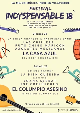 La Casa Azul, Columpio Asesino, Las Chillers, Joe Crepúsculo o Joana Serrat pondrán la banda sonora indie a Villaverde este viernes y sábado en el festival Indyspensable, organizado por la Junta Municipal, presidida por Guillermo Zapata.