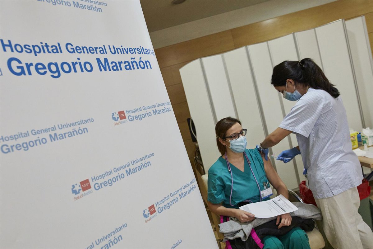 Archivo - Una enfermera vacuna a un sanitario contra el coronavirus en el Hospital Gregorio Marañón de Madrid - Jesús Hellín - Europa Press - Archivo