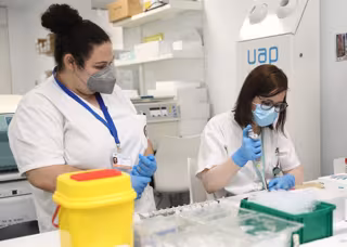 Varios técnicos de laboratorio trabaja con pruebas PCR en el Laboratorio de Microbiología del Hospital público Gregorio Marañón - Eduardo Parra - Europa Press