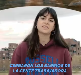 En un vídeo difundido en redes, una joven proclama a ritmo de rap tilda de "desastrosa" gestión de la presidenta madrileña durante la pandemia del coronavirus y pregunta a los residentes de estos enclaves si van a seguir permitiéndolo, junto a "25 años de privatizaciones".