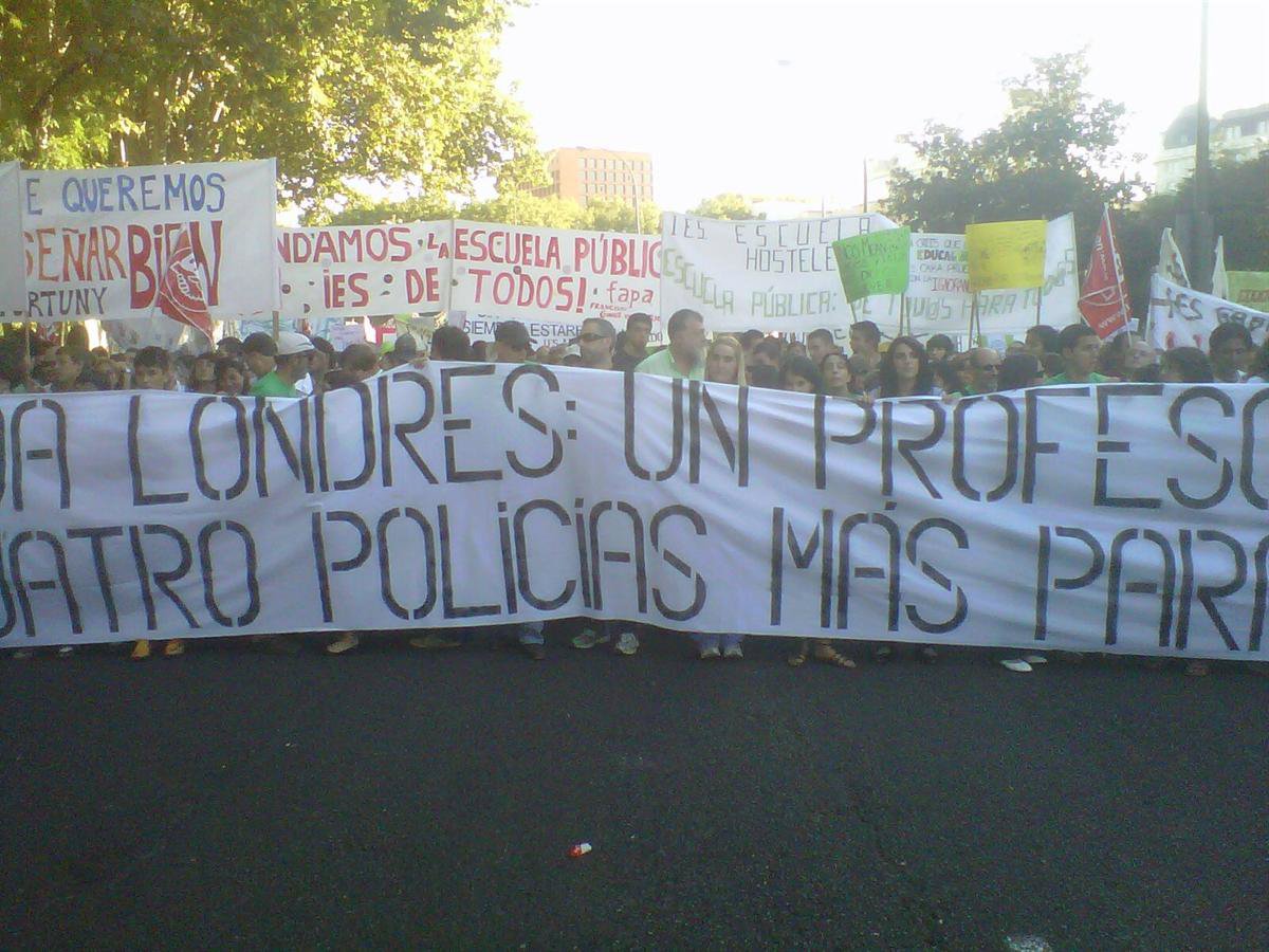 Minutos antes de iniciarse la movilización contra los "recortes" que, a su juicio, ha llevado a cabo la Consejería de Educación, García ha hecho estas declaraciones un día después de que Aguirre afirmara que "si la educación es obligatoria y gratuita en una fase, a lo mejor no tiene que ser gratuita y obligatoria en todas las demás fases", si bien horas después matizó sus declaraciones vía Twitter asegurando que se refería a los estudios de postgrado.
