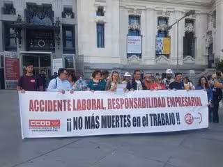 Los sindicatos se han concentrado este viernes en Cibeles, donde han leído un comunicado y recordado con un minuto de silencio al trabajador. La vicesecretaria general de UGT Madrid, Margarita Domínguez, ha cifrado que en lo que va de año son ya 35 accidentes mortales en el trabajo, cuando el total del pasado ejercicio fue de 75, lo que indica una tendencia ascendentes.
