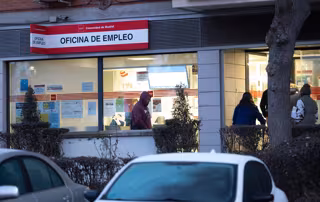Varias personas en la puerta de una oficina del SEPE, a 3 de enero de 2025, en Madrid (España). - Eduardo Parra - Europa Press