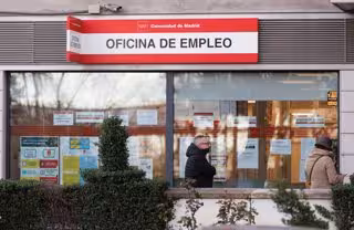 Varias personas en la entrada de una oficina del SEPE, a 4 de abril de 2023 - Eduardo Parra - Europa Press