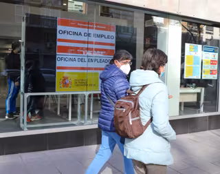 Dos mujeres pasan por delante de una Oficina de Empleo, a 2 de febrero de 2022, en Madrid (España). El número de parados registrados en las oficinas del Servicio Público de Empleo Estatal (SEPE) sube en 17.173 personas en enero (+0,5%), su menor repunt - Marta Fernández Jara - Europa Press