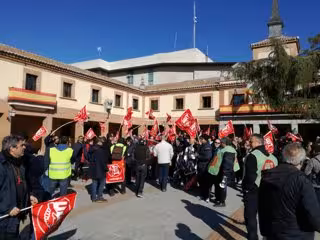 Bajo el lema 'Trabajar con dignidad para mejorar nuestra seguridad', los trabajadores han recorrido a pie la distancia existente entre la sede de la empresa y el Ayuntamiento de Las Rozas, en cuya Plaza Mayor han leído un manifiesto.