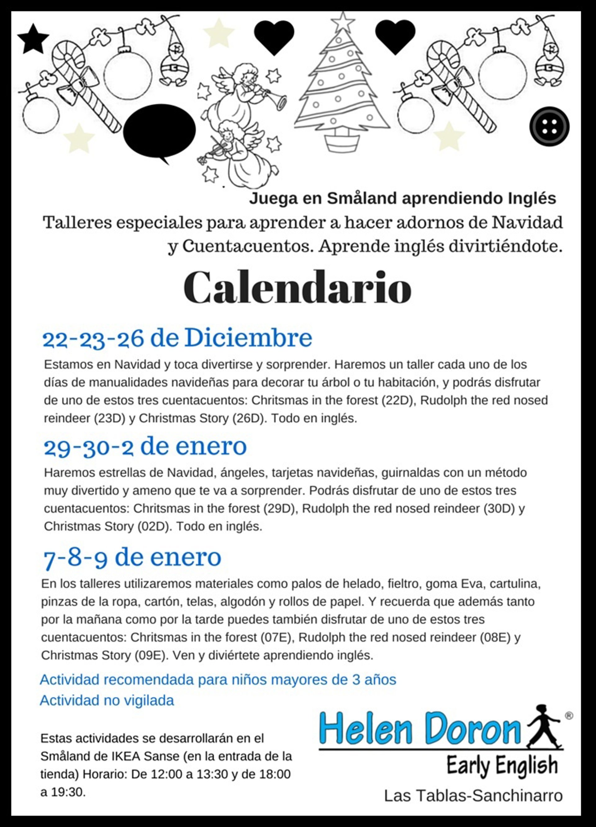 El centro Helen Doron de las Tablas-Sanchinarro organiza talleres especiales para aprender a hacer adornos y cuentacuentos en inglés para los más pequeños en IKEA de San Sebastián de los Reyes durante las vacaciones de Navidad.