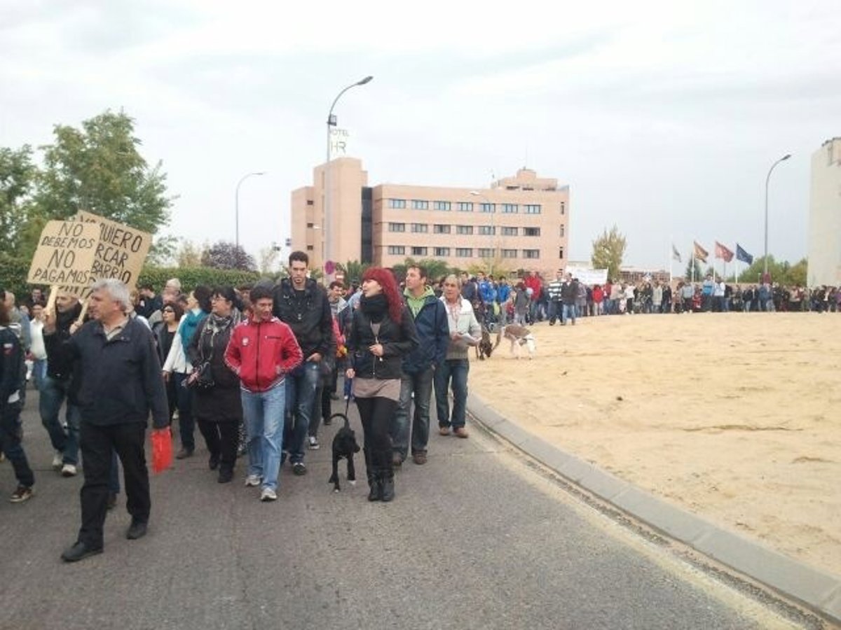 Durante la marcha, que ha tomado la salida a las 12:00 del mediodía desde la Glorieta del Universo, se han podido escuchar lemas como 'No debemos, no pagamos' o 'Yo quiero aparcar en mi barrio sin pagar'.
