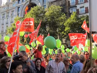 Cerca de 5.000 personas, unas 6.700 según los sindicatos, se han concentrado esta tarde en la calle Alcalá frente a la Consejería de Educación de la Comunidad de Madrid, cargados de globos verdes, el color de la movilización contra los recortes, y pidiendo la dimisión de la jefa del Gobierno madrileño, Esperanza Aguirre.