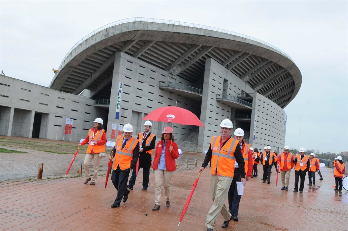 Bajo una intensa lluvia que acompañó durante toda la tarde a los 13 evaluadores olímpicos, el presidente del conjunto colchonero mostró en qué estado se encuentran las obras del futuro estadio del Atlético, según el protocolo firmado con el Ayuntamiento en julio de 2007, y donde está previsto que se celebren las ceremonias de apertura y clausura de los Juegos, junto a las pruebas de atletismo.