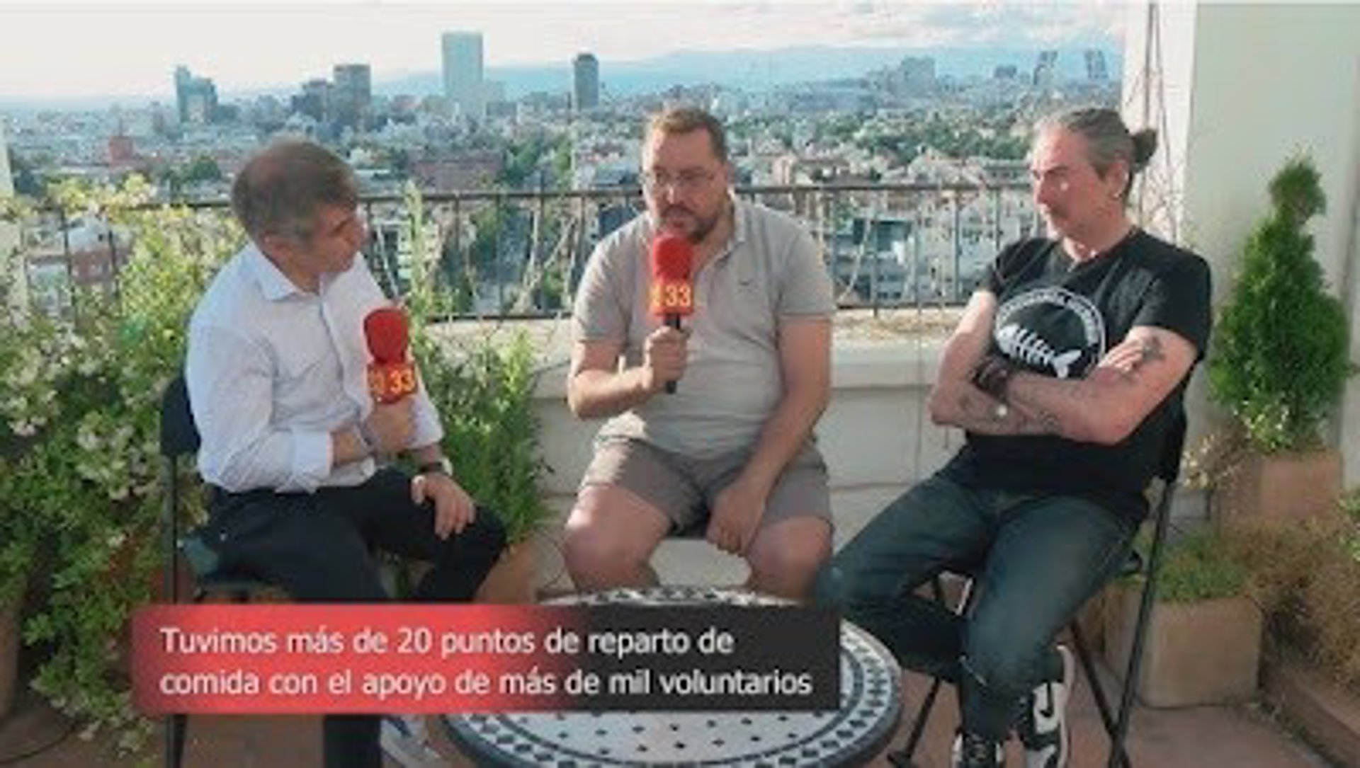 El director de Canal 33 TV, el exconcejal presidente de los distritos de Latina y Hortaleza de Madrid, Alberto Serrano, y el chef Chema de Isidro, en una entrevista en las Terraza de Avenida de América en Canal 33. - CANAL 33 TV