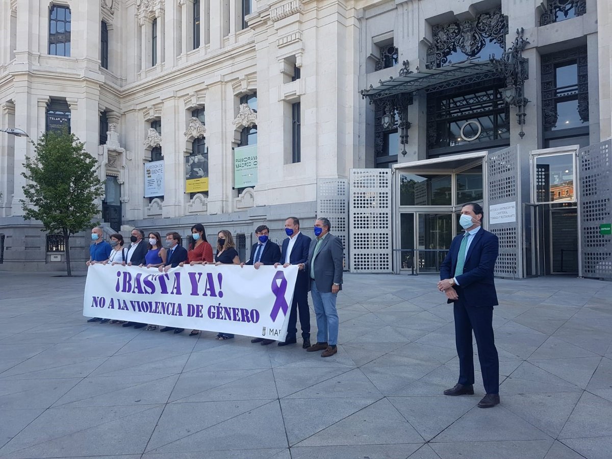 El Ayuntamiento de Madrid ha condenado el último asesinato machista --perpetrado este domingo en Pozuelo de Alarcón-- y los partidos, desde Cs a PSOE, han pedido unidad a todas las fuerzas políticas para acabar con esta lacra, un mensaje dirigido directamente a Vox, que una vez más ha decidido no situarse detrás de la pancarta en la que el Consistorio se planta con un 'Basta ya' a la violencia de género.