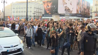 Cientos de personas se han concentrado este domingo en la Puerta del Sol de Madrid sumándose a la convocatoria del colectivo 'Marchas de la Dignidad de Madrid' como muestra de apoyo al derecho a decidir y a la consulta independentista convocada por la Generalitat, y contra la "represión" de la que acusan al Gobierno.