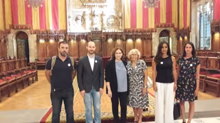 La presidenta de la Comunidad de Madrid, Cristina Cifuentes, la alcaldesa de Madrid, Manuela Carmena, y representantes de todos los grupos municipales se han sumado hoy al grito unánime del 'No tinc por' (No Tengo Miedo) en Barcelona en contra de los atentados terroristas perpetrados el pasado jueves en las ciudades de Barcelona y Cambrils.