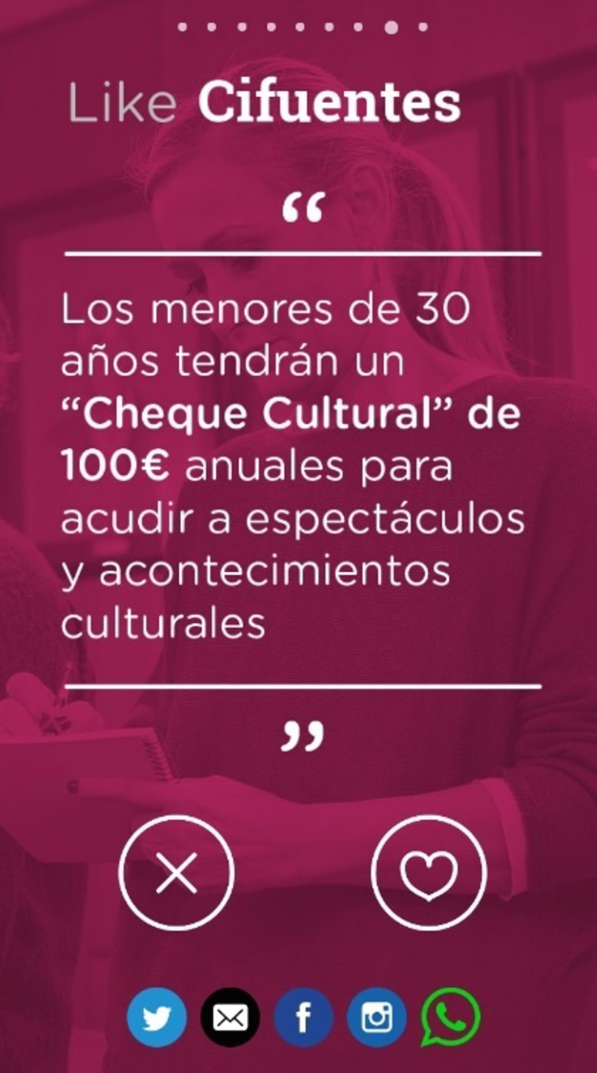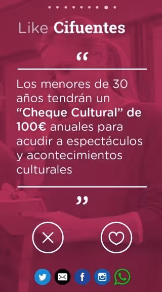 La aplicación también permite compartir las propuestas a través de las redes sociales y acceder a la página web de la candidata www.cristinacifuentes.es.