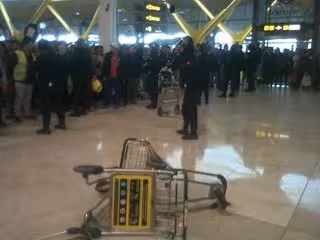En medio de empujones y cargas policiales, que han terminado con las cinco detenciones, han podido verse incluso enfrentamientos entre algunos usuarios y personal que se encontraba trabajando en el aeropuerto, hasta el punto de que algunos viajeros han tenido que enseñar sus billetes para poder acceder a determinados pasillos en el aeropuerto de Barajas.