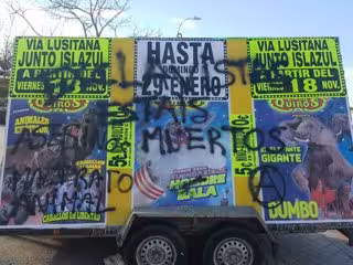 En declaraciones a Europa Press, el gerente del circo, Nacho Pedrera, ha explicado que un grupo de manifestantes esperó anoche a que terminara la actuación, que concluye a las 11.00 horas, para atacarle e insultarle. Tras salir de las instalaciones, observó junto a otros empleados que varios caminiones presentaban pintadas en las que se leía 'Esclavistas, estáis muertos'.