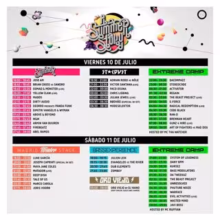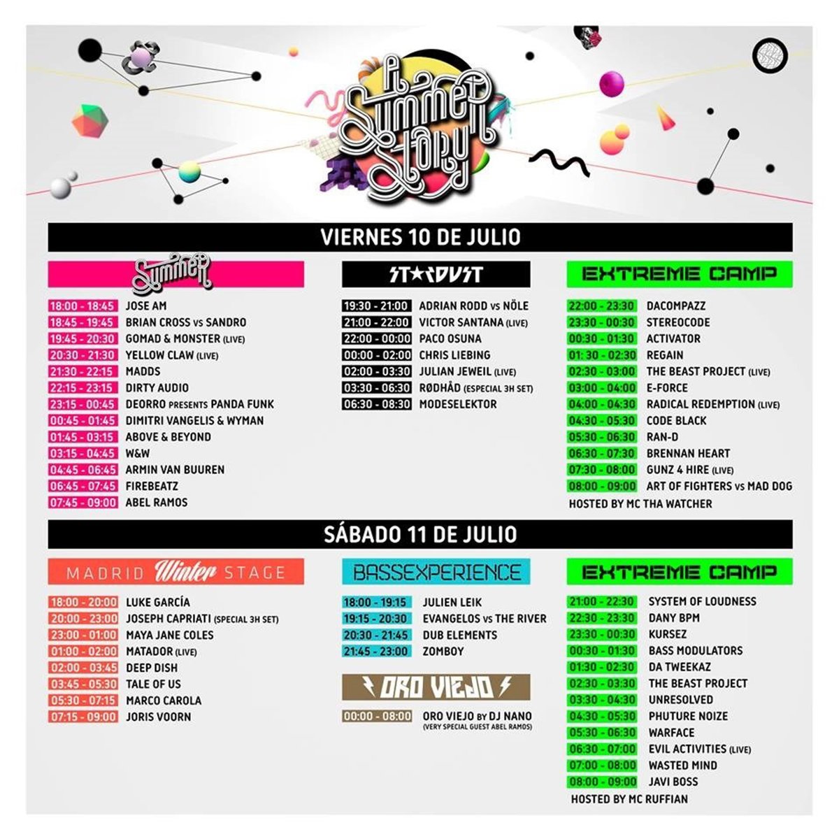 A Summer Story presentará una programación temática, centrada en varios espacios y escenarios para las dos jornadas del festival. Summer Stage, Stardust y Extreme Camp serán los stages durante el viernes 10 de julio.