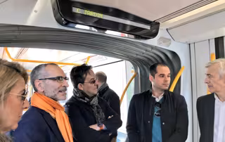 El diputado en la Asamblea de Madrid y portavoz de la Comisión de Infraestructuras, Transporte y Vivienda, Juan Rubio, ha explicado durante el trayecto algunas de las particularidades del proyecto. "La velocidad media de los autobuses será superior a la del actual Metro Ligero, contarán con un motor de gas de emergencia por si fallase la instalación eléctrica y serán más eficientes, baratos y te llevarán antes a tu destino", ha comentado.