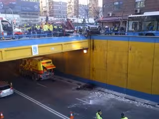 Tras continuar unos metros, el vehículo ha chocado contra la barandilla que protege el túnel de Francisco Silvela, a cinco metros de altura, y ha quedado suspendido en el vacío, aunque estable. Además, ha colisionado de forma leve contra un autobús de la línea 12 de la Empresa Municipal de Transportes (EMT).
