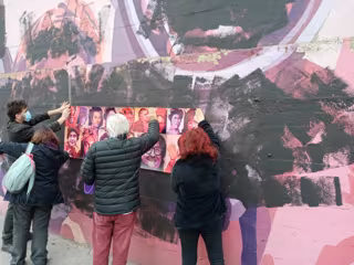 Colectivos vecinales han cubierto la pintura negra del mural de Ciudad Lineal con reproducciones de los rostros de las mujeres que han hecho historia.
