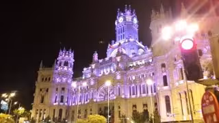 El palacio de Cibeles se ha iluminado esta noche con luces de colores magenta, lavanda y azul por el Día de la Visibilidad Bisexual, que se conmemora este sábado.