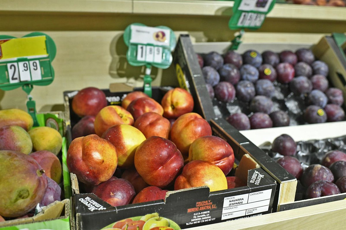 Fruta variada: caja de manzanas, caja de ciruelas y caja de mangos en un mercado de Madrid. - Oscar Cañas - Europa Press - Archivo