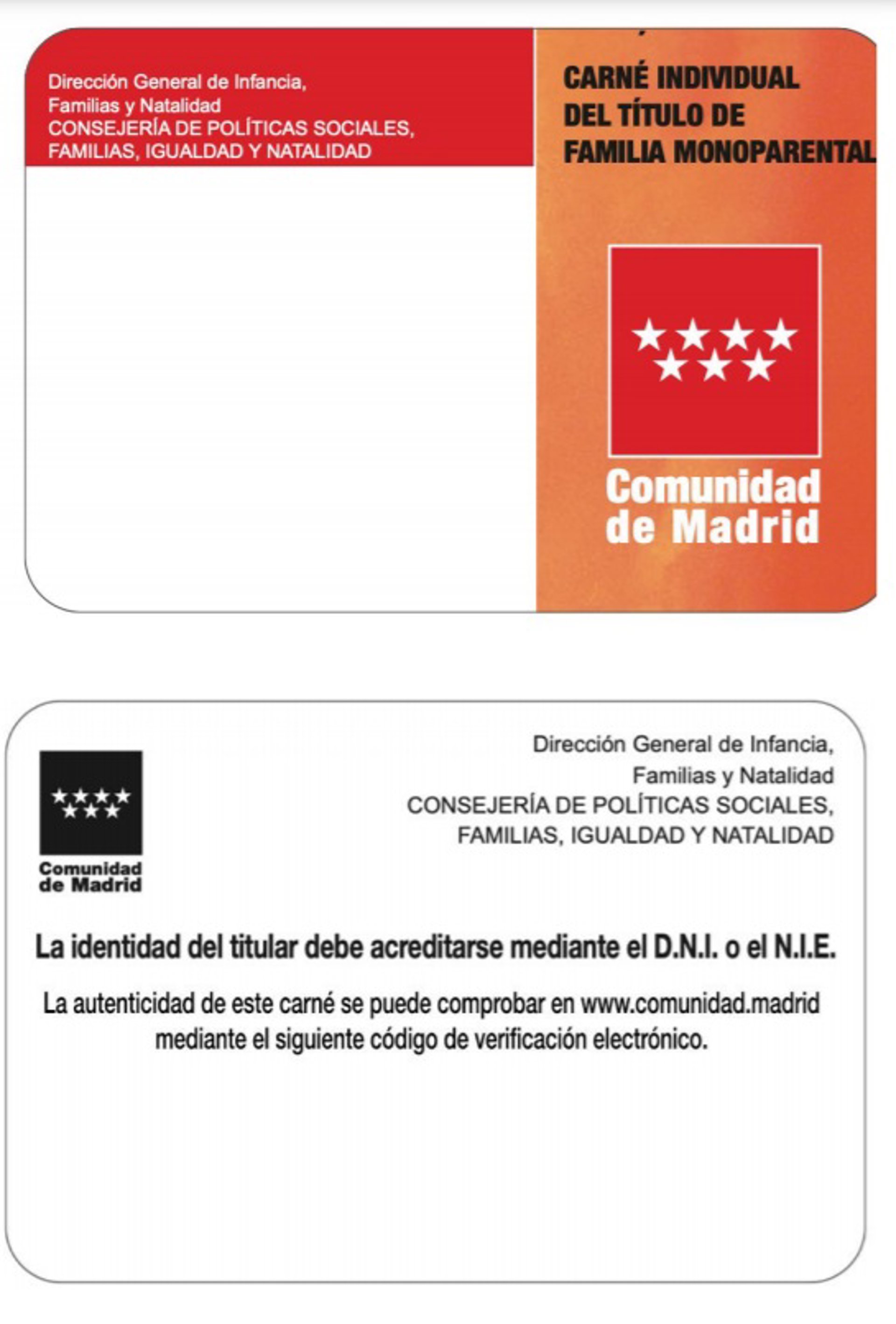 Modelo de carné en el que se acredita la condición de familia monoparental de la Comunidad de Madrid - PORTAL DE LA TRANSPARENCIA DE COMUNIDAD DE MADRID
