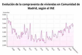 La compraventa de viviendas en la Comunidad de Madrid aumentó un 8,8 por ciento el pasado mes de septiembre en relación al mismo mes de 2017, hasta sumar 6.754 operaciones, según ha informado este martes el Instituto Nacional de Estadística (INE).