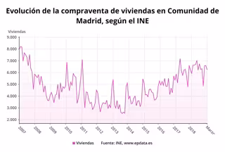 La compraventa de viviendas subió un 5,3 por ciento el pasado mes de marzo en la Comunidad de Madrid en relación al mismo mes de 2018, hasta sumar 6.233 operaciones, según ha informado este martes el Instituto Nacional de Estadística (INE).