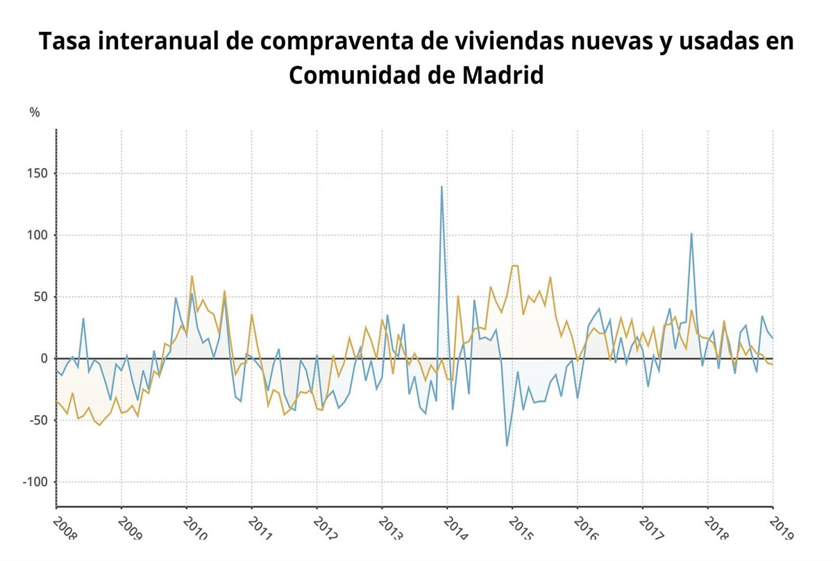 La compraventa de viviendas bajó un 0,3 por ciento el pasado mes de enero en la Comunidad de Madrid en relación al mismo mes de 2018, hasta sumar 6.593 operaciones, según ha informado este jueves el Instituto Nacional de Estadística (INE).