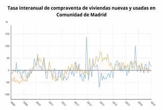 En términos generales, la compraventa de viviendas bajó un 0,2 por ciento, hasta sumar 47.645 operaciones. Este retroceso, que pone fin a nueve meses consecutivos de avances interanuales, fue consecuencia del descenso de las operaciones sobre viviendas usadas en un 2,6 por ciento, hasta 38.386 transacciones, ya que la compraventa de viviendas nuevas aumentó un 11,2 por ciento interanual, hasta 9.259 operaciones.