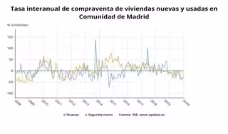 Todas las comunidades presentaron tasas anuales negativas en el número de compraventas de viviendas en junio figurando, siendo la región madrileña la que registró la cuarta mayor caída tras Galicia (-44,8%), Comunitat Valenciana (-43,9%) y Canarias (-41,8%).