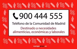 El servicio se pone en marcha hoy y funcionará de lunes a viernes en horario de 9 a 21 horas. Fuera del horario establecido, la cuenta de correo electrónico 'apoyosocialcovid19@madrid.org' estará activa para solicitar ayuda.