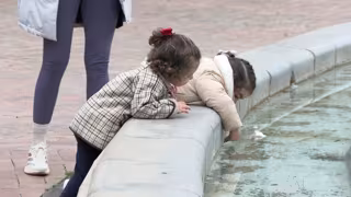 Niñas jugando con el agua de una fuente. - EUROPA PRESS
