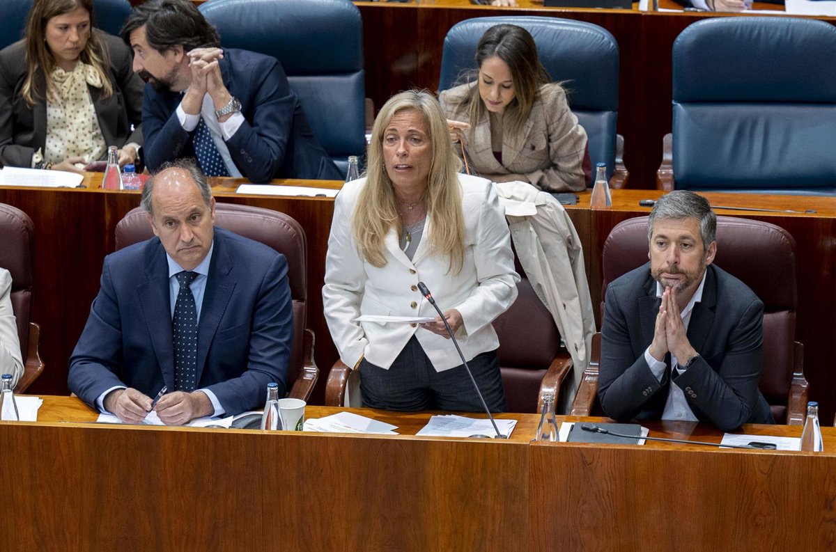 La consejera de Economía, Hacienda y Empleo de la Comunidad de Madrid, Rocío Albert (c), durante el Pleno de la Asamblea de Madrid, a 9 de abril de 2026, en Madrid (España). La Asamblea de Madrid aprueba hoy con la mayoría absoluta del PP y por lectura ún - Alberto Ortega - Europa Press