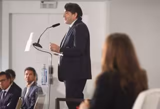 El consejero de Transportes e Infraestructuras de la Comunidad de Madrid, David Pérez, interviene durante un desayuno informativo de Europa Press, en el Hotel NH Collection - Eduardo Parra - Europa Press